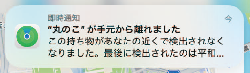 トラッカーを置いて離れた場合のみ通知が届きます。トラッカーが移動して離れた場合は、通知は届きません。