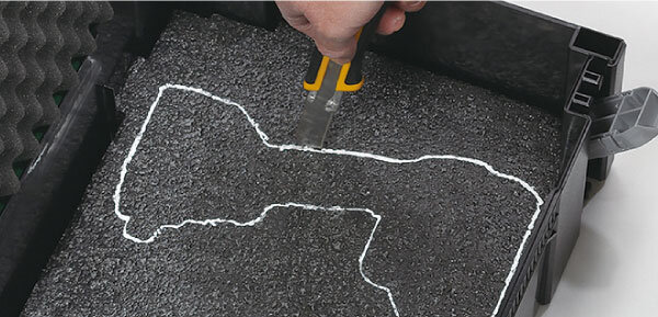 ①収納品に合わせて切り取り線を引く。