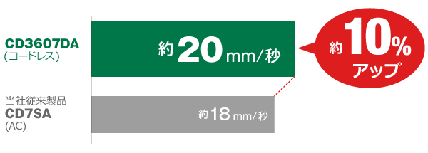 当社従来製品:チップソーカッタCD7SAとの比較。数値は参考値です。材料や条件により異なります。