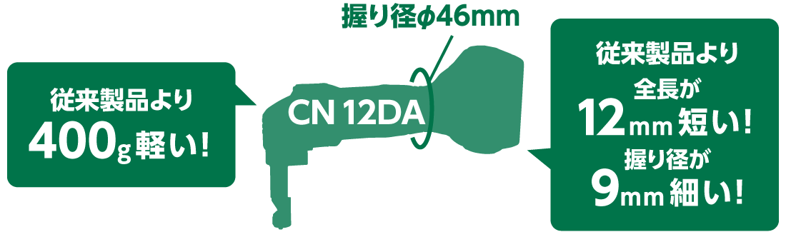 ブラシレスモーターと10.8V電池搭載により、小形化を実現。長時間作業でも疲れにくく、取り回しやすくなりました。