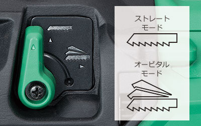 チェンジレバーの切替えにより、「ストレートモード」と「オービタルモード」を選択することができ、木材の切断効率が大幅に向上します。