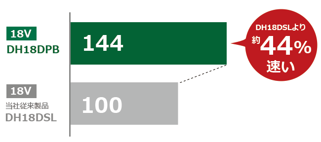 (当社従来製品DH18DSLの値を100とした場合の比較)