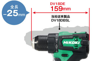 当社従来製品コードレス振動ドライバドリルDV18DBSLとの比較。数値は参考値です。材料や条件により異なります。