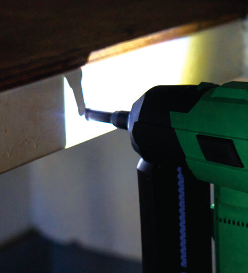 当社初のエアスプリング方式を採用し、空気圧駆動ならではのロスの少ない効率的な打込みを実現。H鋼などの鋼材下地にも直接打込めるパワーで、内装施工をはじめ幅広いシーンで活躍します。