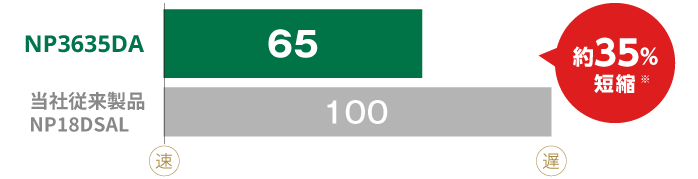 当社従来製品:コードレスピン釘打機 NP18DSALとの比較。数値は参考値です。電池の状態や条件により異なります。